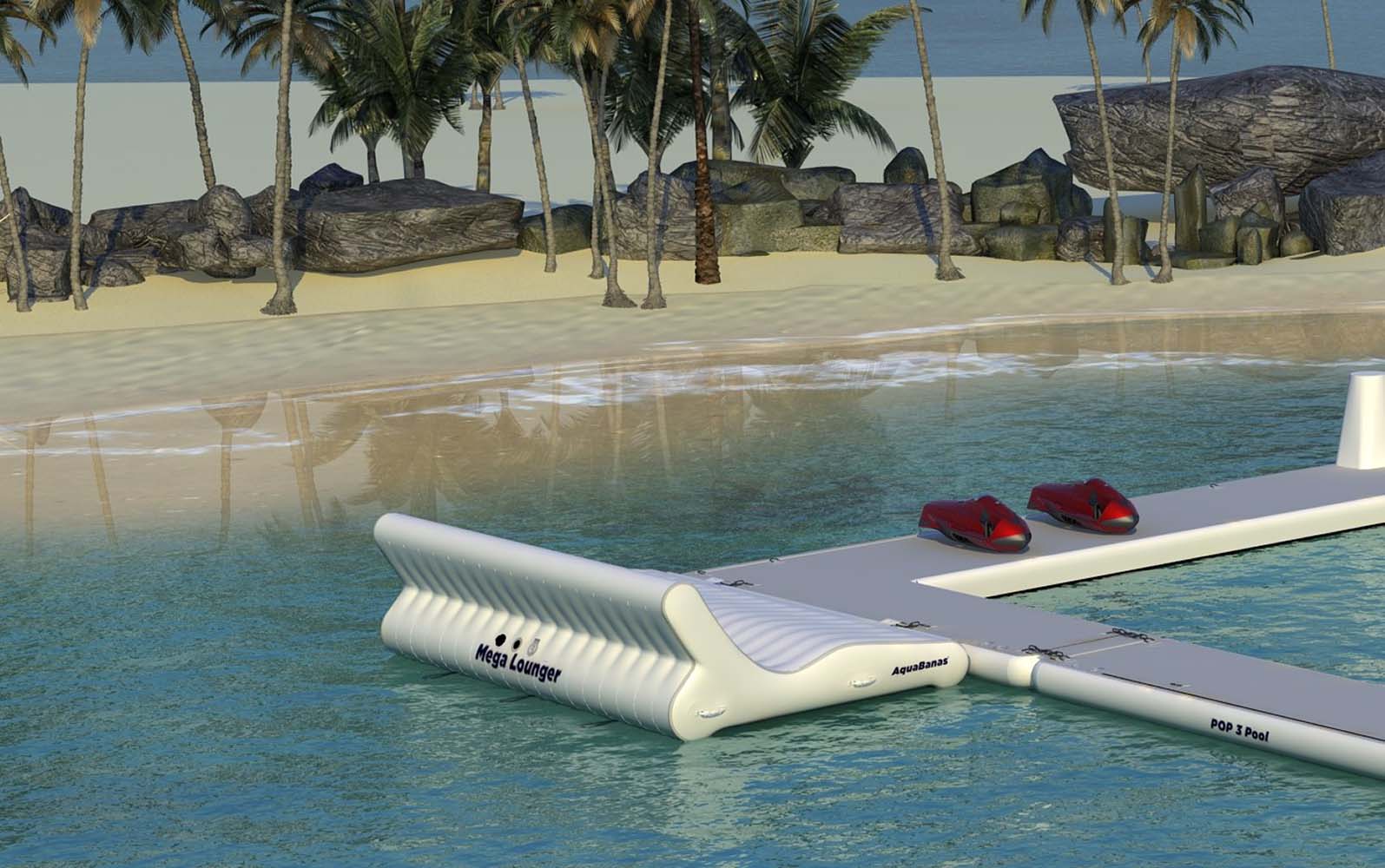 The 11’ wide AquaBanas Mega Lounger can hold 5 or more adults and is perfect for floating on the water, or placing on the beach. The unit connects to the side of any AquaBanas and provides additional space to relax and enjoy your day. The Mega Lounger is also perfect for land use!