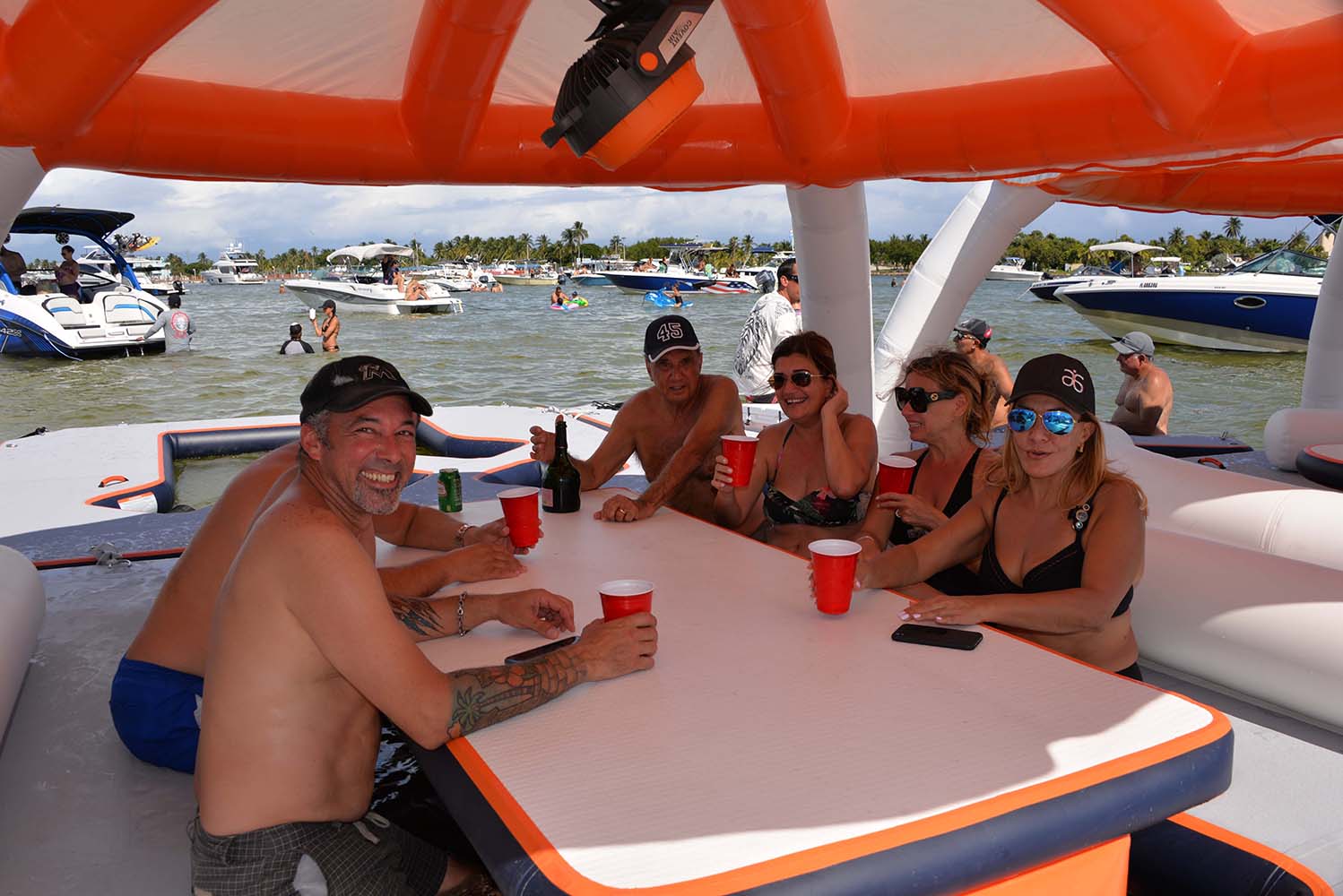 The Picnic Bana is the Flagship of the AquaBanas product line. This impressive inflatable comfortably seats 10+ adults at the table with plenty of room to spare. The Picnic Bana deck footprint is 15 ft x 11 ft x 8 inches.